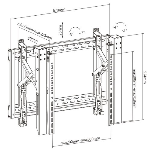 LVW06-46T provides a professional video wall solution while offering universal compatibility with load capacity of 70kg/154lbs and max. VESA 600×400 hole pattern. Multi-dimensional micro adjustment enables precision alignment of the video wall configuration including depth, height and tilt. This video wall mount features a quick-release pop-out mechanism for easy installation and maintenance. Quick-release latch keeps displays in place via activating lock & unlock mode. It is a perfect solution for public and commercial displays with anti-theft design (require for a padlock).