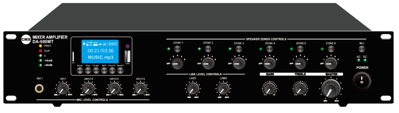 CMX 120W 6 Zone Mixer Amplifier with MP3/USB/FM/Bluetooth (Volt/Ohm)