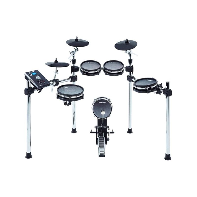 The Alesis Turbo Mesh Kit is a complete 7-piece electronic drum kit centered around next-generation Alesis mesh head drum technology. Mesh heads are the overwhelming preference of drummers when they play electronic kits because of their natural feel and ultra-quiet response.