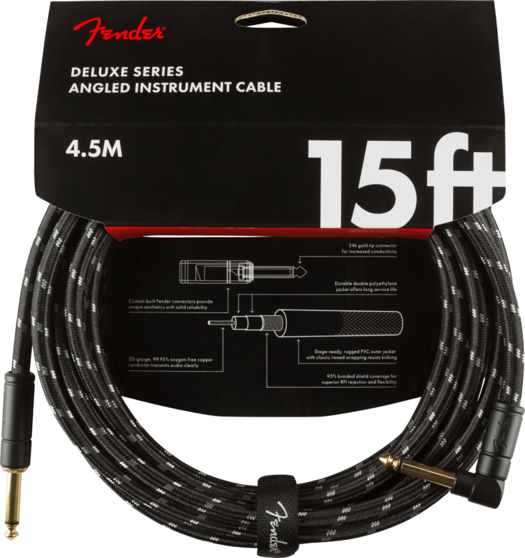 Fender Deluxe Series Angled Instrument Cable ( 15ft/4.5m ) – Black Tweed – 099-0820-085